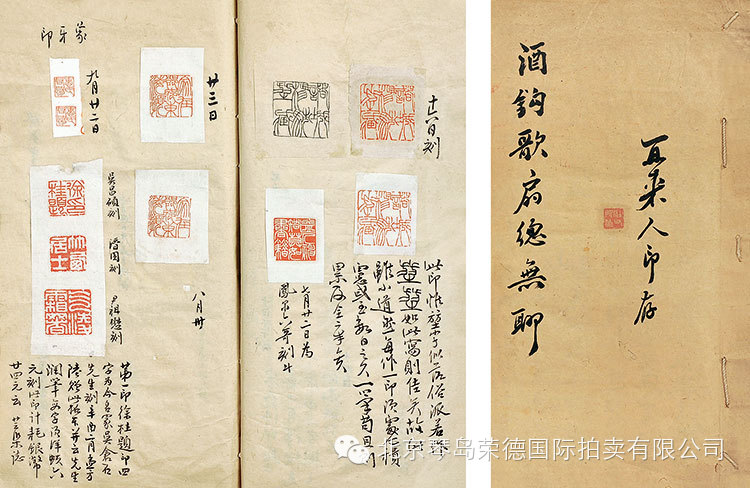 1722 《再来人印存》《酒钓歌扇总无聊》印稿313枚。郑爰居、吴昌硕、孟方陆印稿。郑爰居书法