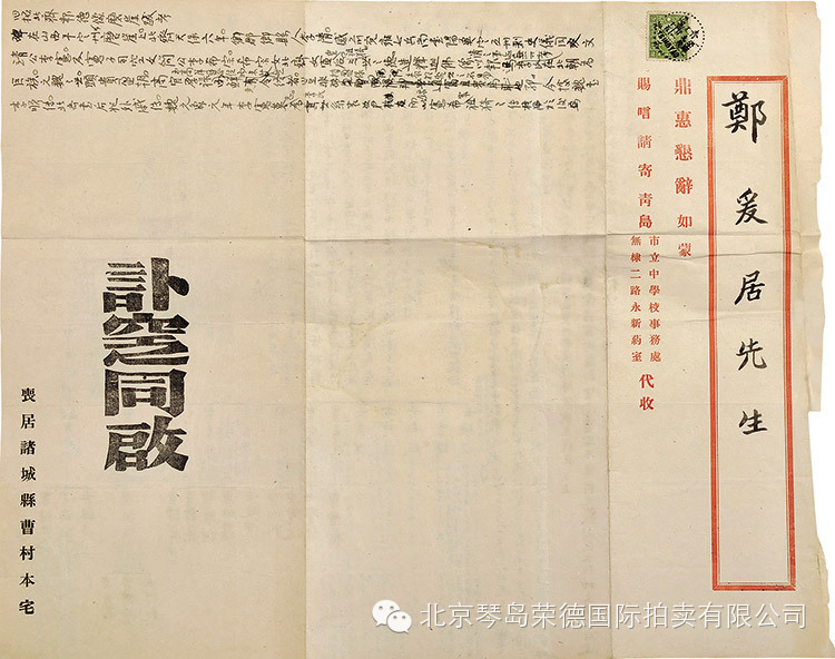 1703 青岛古物管理委员会致郑爰居公函一通(附信封) RMB:无底价