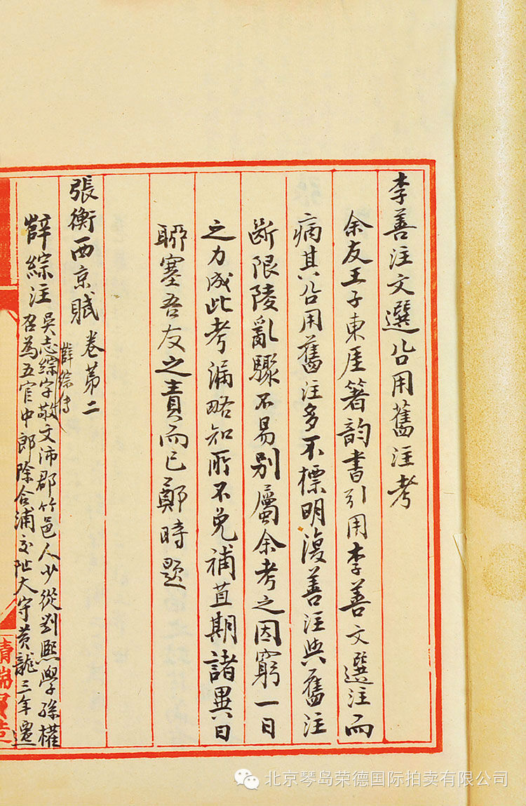 1742 郑爰居编纂《李善注文选注释》手稿一册 五十二页 RMB:1,000-2,000