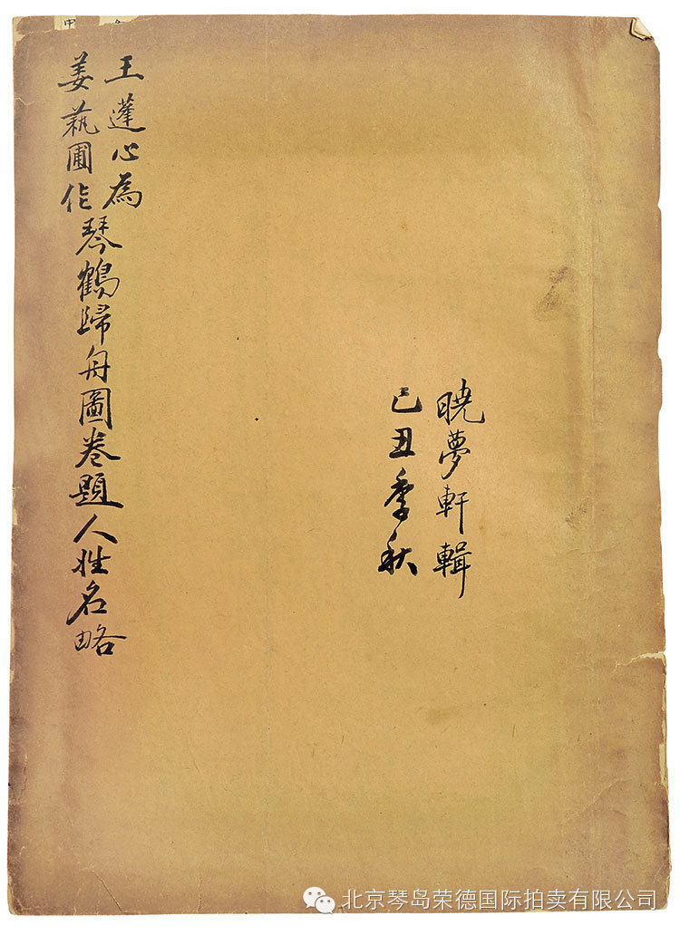 1705 王蓬心《晓梦轩》《琴鹤归舟图》名录墨迹一册 纸本 RMB:无底价