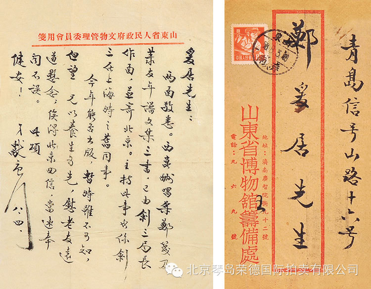 1、青岛人民政府致郑爰居信札二通(附信封)