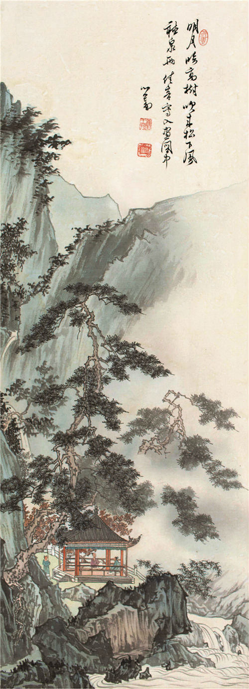 注:张大千题签:苦瓜和尚溪山亭子拟云林生笔,大风堂供养。钤印:大千