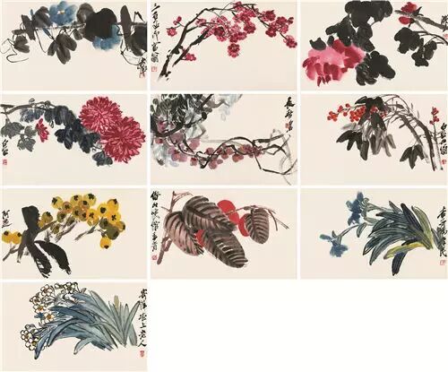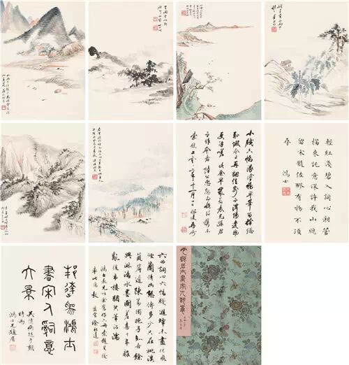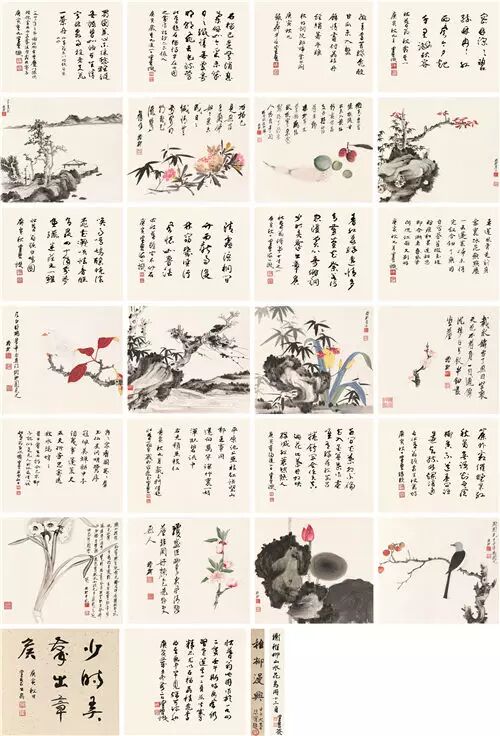 谢稚柳(1910-1997)、陈佩秋(b.1922) 山水花鸟、书法合璧册页二十四开
