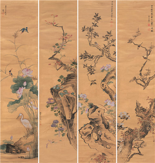 jiang hong 、xu bang、wang zhi、 chen xing Four screens of flowers and birds