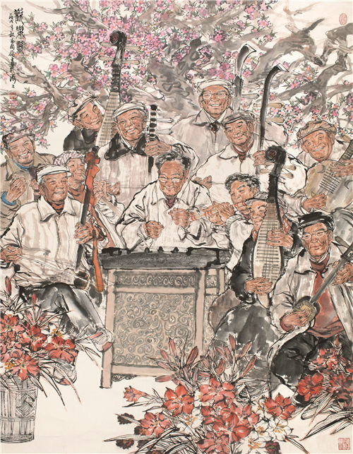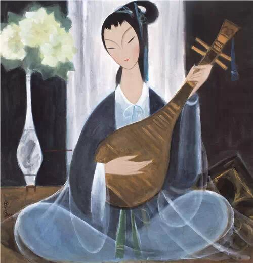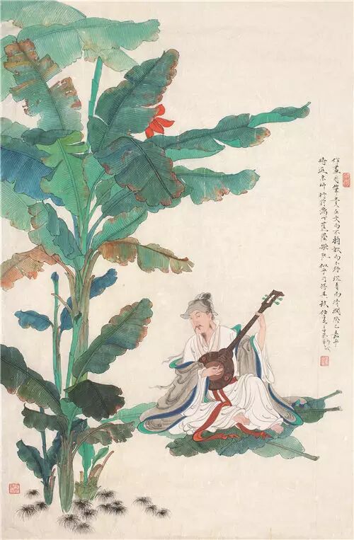 ren zhong(b.1976) Play an instrument under the shade of banana tree