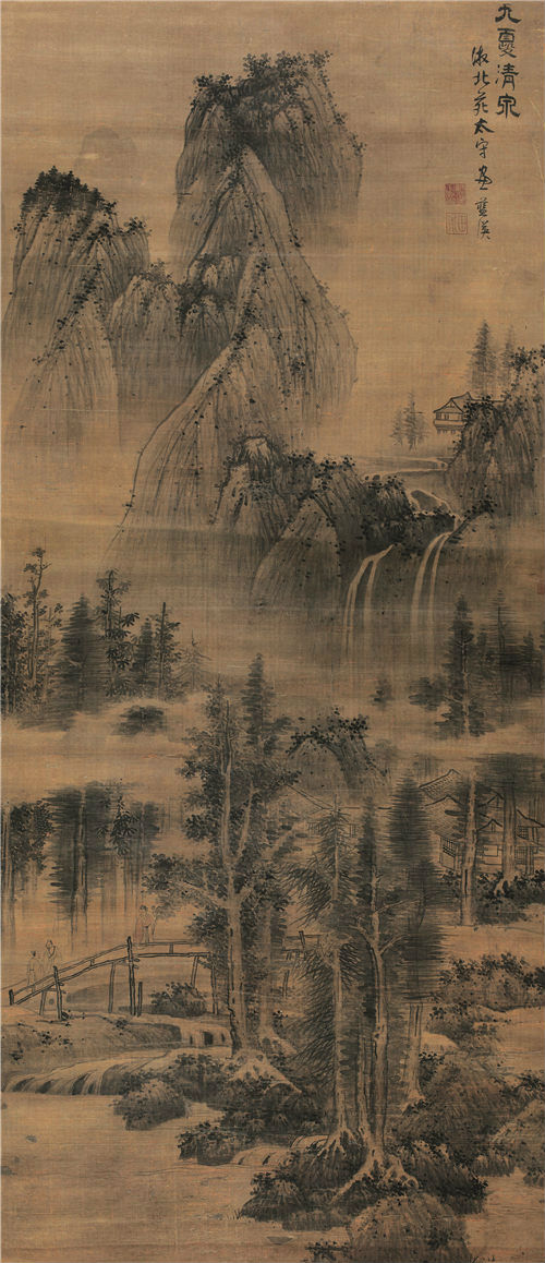 题识:九夏清泉,仿北苑太守画,蓝瑛。