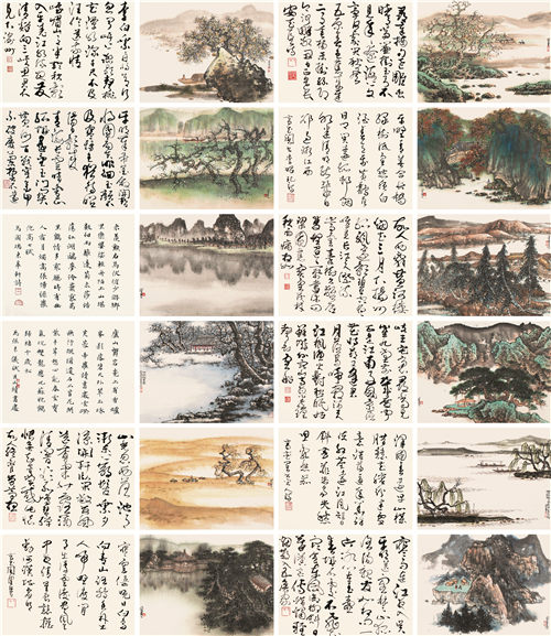 xie zhiliu(1910-1997)anD chen peiqiu(b.1922) Twenty-fourmo of pictures of mountains, rivers and flowers and calligraphy