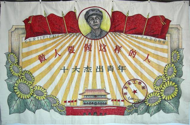 朱发东《十大杰出青年》,2007,帆布混合材料,230x350cm