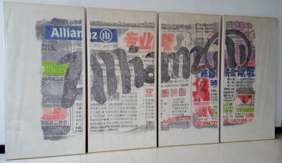 朱发东《专业保险ALLIANZ》,2004,羊皮纸手绘,180x90cmx4