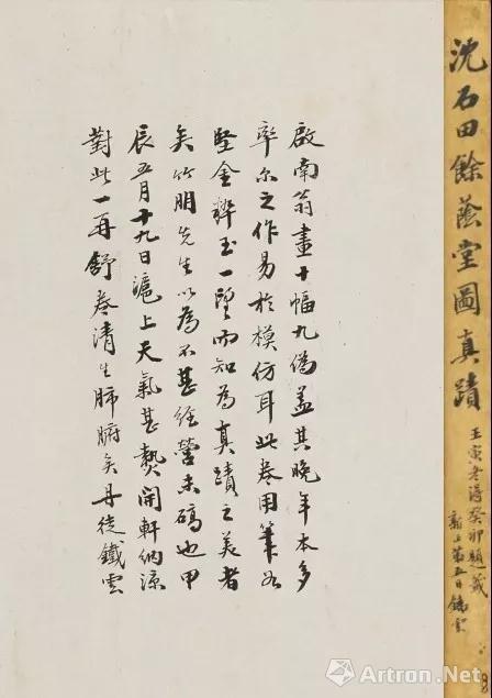 刘鹗题签并跋后,签条署年壬寅(1902)冬得,癸卯(1903)题签。沈周书画及铁云墨迹皆稀觏,却并见于此卷。