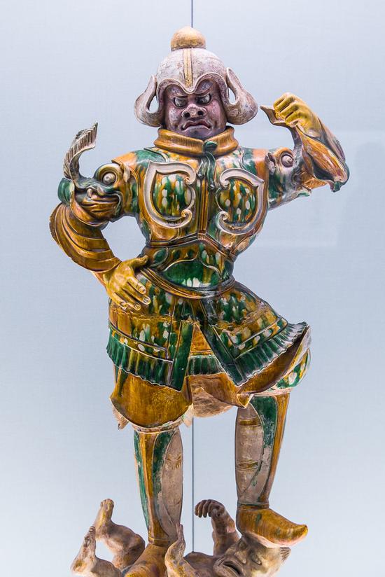 下面是一组笔者实拍于上海博物馆唐三彩天王像,特发出与各位分享~看看它是否也能吓到您呐?